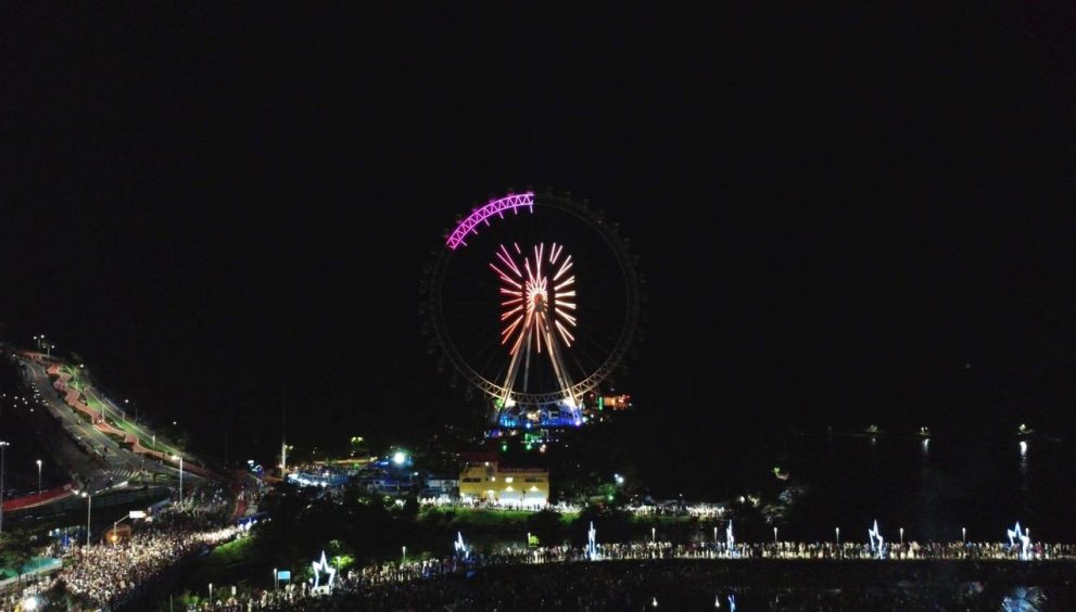 Pelo quinto ano consecutivo, a roda-gigante ditou o ritmo da virada na cidade. Quando os últimos segundos de 2025 ficaram para trás, a contagem regressiva numérica tomou conta da estrutura e a orla entoou um coro emocionante, explodindo em alegria assim que o “Feliz 2026” brilhou na Roda FG.